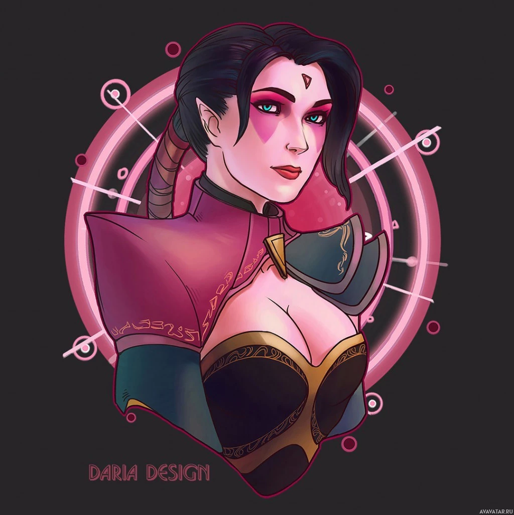 a Templar Assassin, as indicated by her attire and weapon style. The artwork includes elements such as a pink aura surrounding her head and