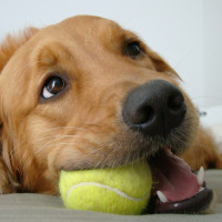 Картинки на аву животные | Фотки и рисунки с животным | Animals | Золотистый ретривер держит теннисный мяч во рту