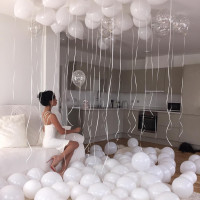 white walls and a simple decor style. There is no indication of the specific occasion or event related to the balloons.