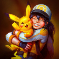 Pikachu plushie in one hand, indicating a connection with the famous electric-type Pokémon from the series.