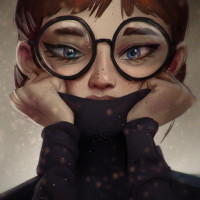 facial expression suggests a thoughtful or contemplative mood. She's also wearing what seems to be