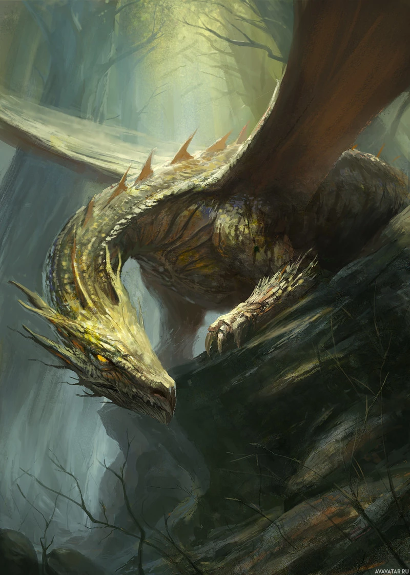 large wings, and a scaly texture typical of dragons from folklore. It's situated on