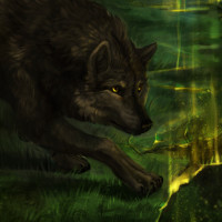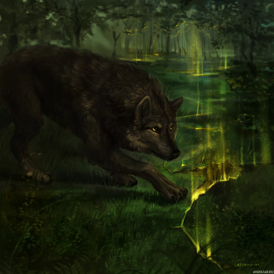 a sense of mystery and the wolf's actions could be interpreted as curiosity or vigilance.