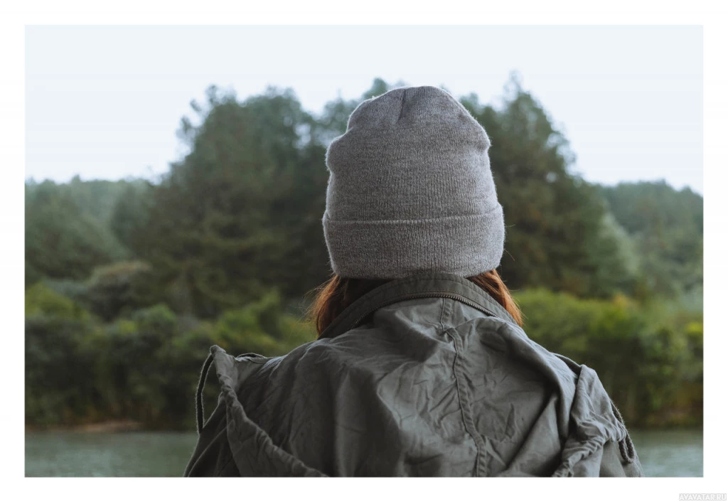 a grey beanie and what appears to be a backpack. They are standing in front of