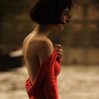 a body of water with a bridge in the background, looking away from the camera and towards the water. The individual appears to be