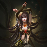 a female character. She has long, dark hair and is depicted in