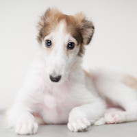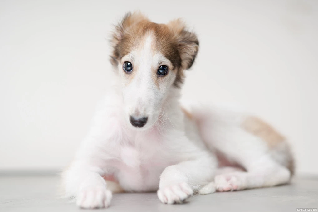 На снимке изображена молодая пушистая собака с длинными ушами. Это щенок породы гончая фараона, которая известна своей уникальной и тонкой формой тела. У собаки яркие голубые глаза и выражение лица, которое кажется любопытным или внимательным. Фон прост и не отвлекает от темы.