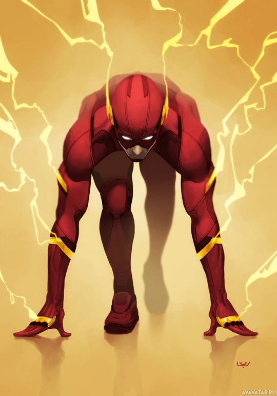 a dynamic pose that suggests movement, likely representing his superhero abilities to run at supersonic speeds. The character is drawn in a highly detailed and stylized manner, which is typical for modern comic book artwork. The background has