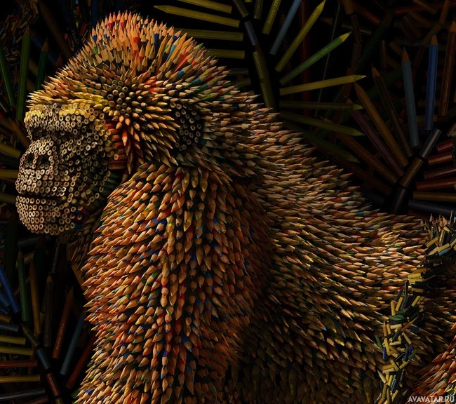 карандаши | Скачать аватары с карандашом | Pencils | Скульптура гориллы, сделанная из карандашей