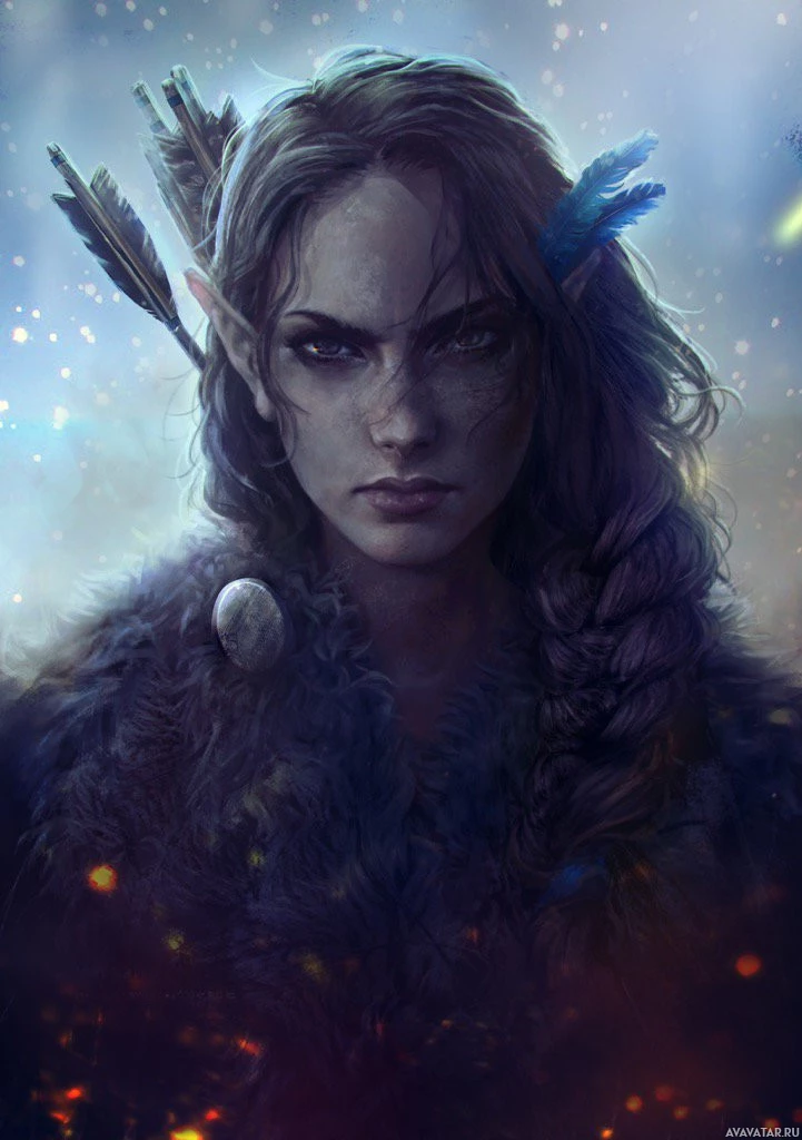 a fantasy character, depicted as an elf. The character has pointed ears, which are characteristic of elves in many