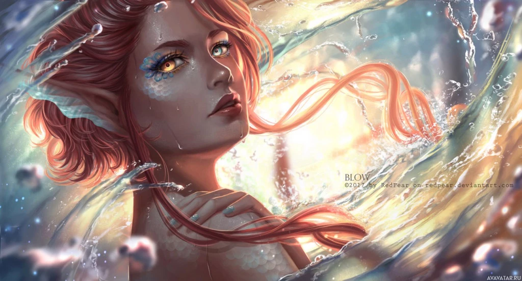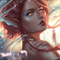 pink hair. She is shown from the shoulders up, and her expression is contemplative or focused on something out of frame. Her skin is pale, and she has what seems to be scales, which are often associated with mermaids in mythology and folklore. The background includes water and bubbles, enhancing the underwater theme that typically accompanies mermaid illustrations. The overall style suggests it might be fan art for a fantasy-related medium, such as