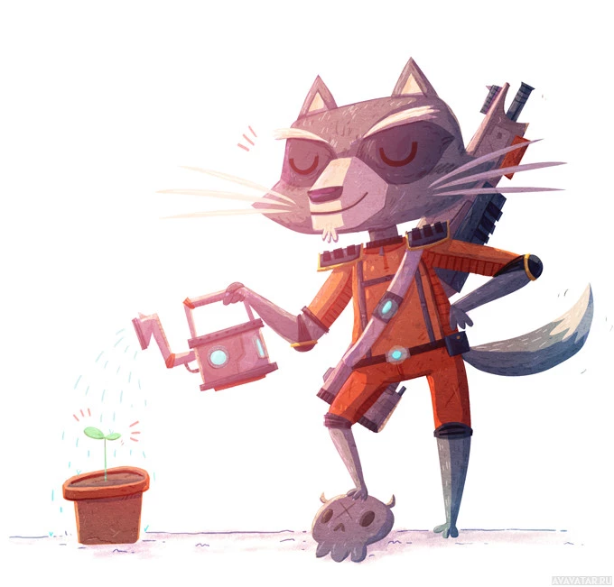 The image features an anthropomorphic raccoon character that resembles