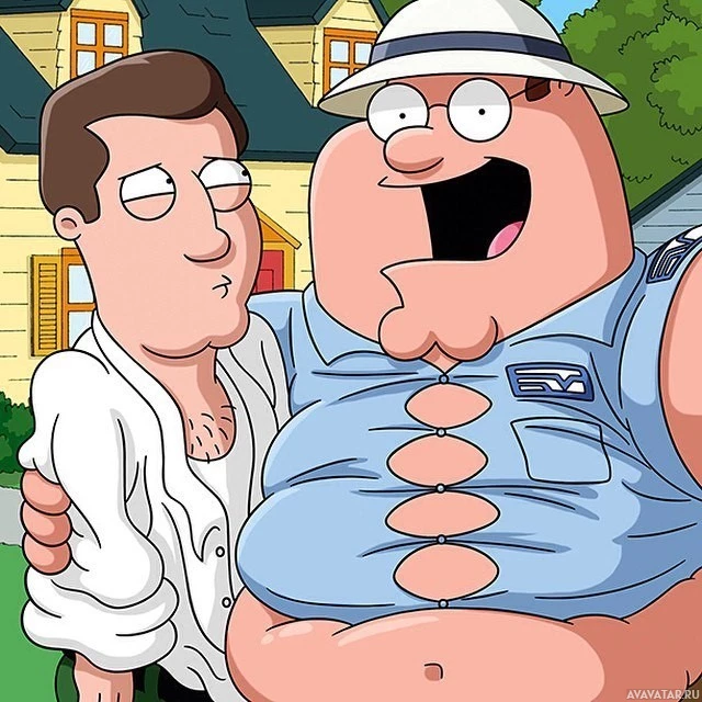 animated characters from the television show "Family Guy." On the left, there is a character with short