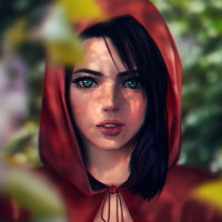 Riding Hood, but the design is modern and stylized rather than traditional. The character is surrounded by what appears to be wildflowers or foliage, suggesting an outdoor, possibly