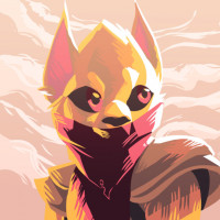 This image features a character that appears to be from the video game Dota 2, specifically resembling Bounty Hunter. The character is depicted in a stylized manner with vibrant colors and a warm tone that gives it an almost retro or pixel art appearance.