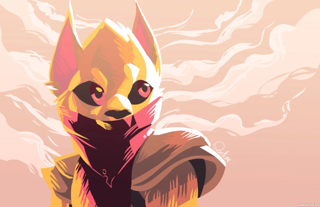 На этом изображении изображен персонаж из видеоигры Dota 2, в частности, похожий на Bounty Hunter. Персонаж изображен в стилизованной манере с яркими цветами и теплым тоном, что придает ему почти ретро или пиксельный художественный облик.