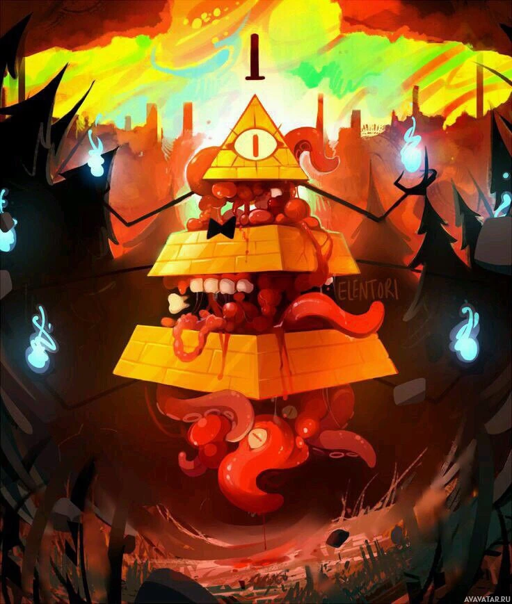a fantastical scene with various characters and elements that are not typical of everyday life. At the center, there is a pyramid made of