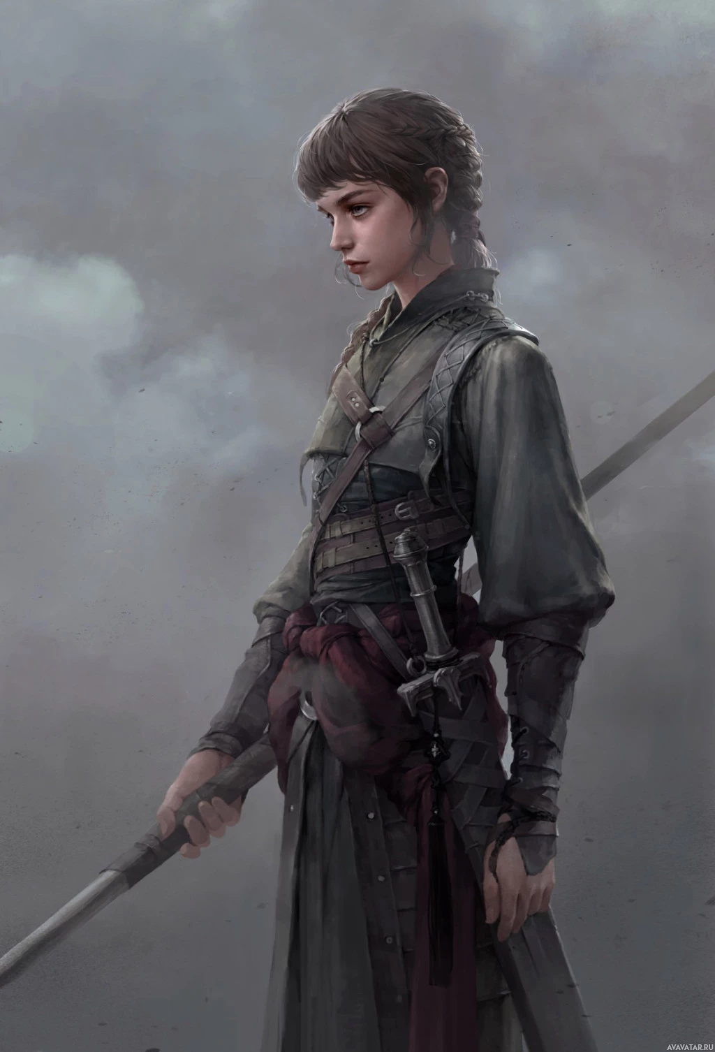 a female character, likely from a fantasy or historical setting. She has