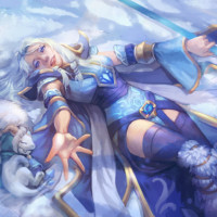 Crystal Maiden from the game. She is shown lying down on what appears to be snow-covered ground, wearing armor and holding a staff, which are typical elements of her