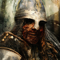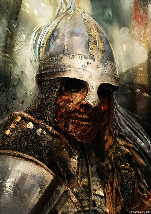 The image shows a figure that appears to be a zombie or undead warrior, dressed in