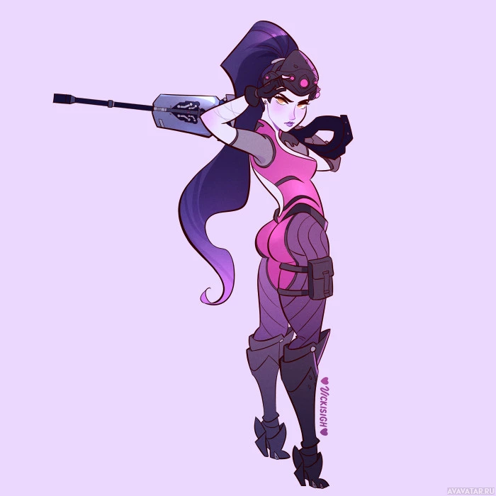 the video game "Overwatch," where one character known by the name Widowmaker uses a sniper rifle as part of her abilities in the game.
