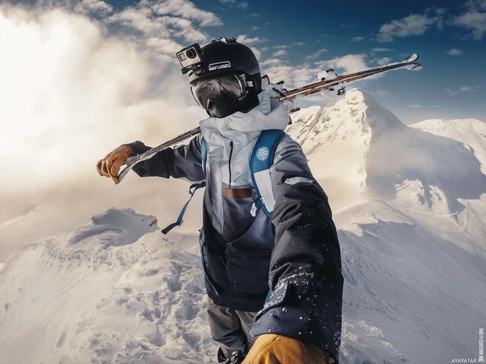 outdoor adventure, the person taking the selfie is the main focus of this image.