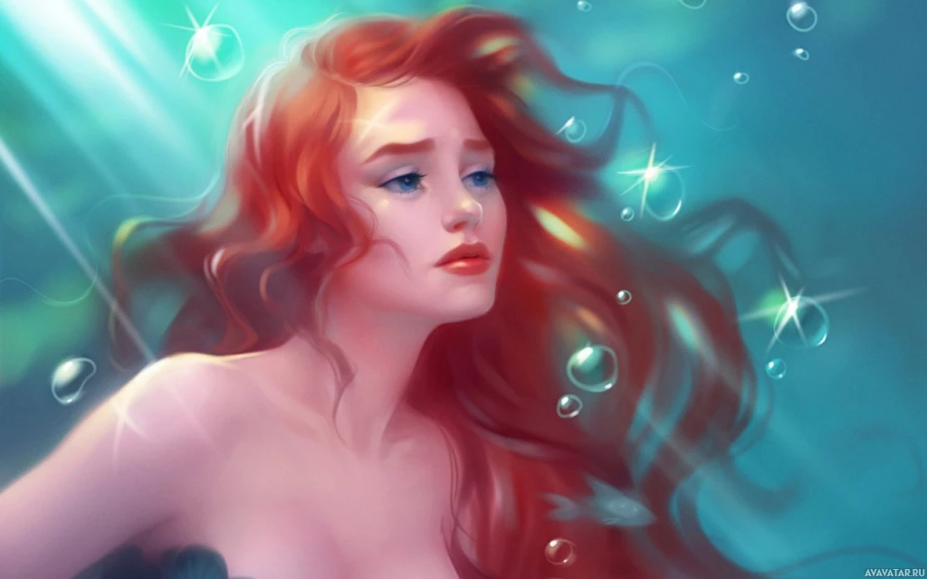 the animated movie "The Little Mermaid." She is depicted with long, flowing