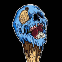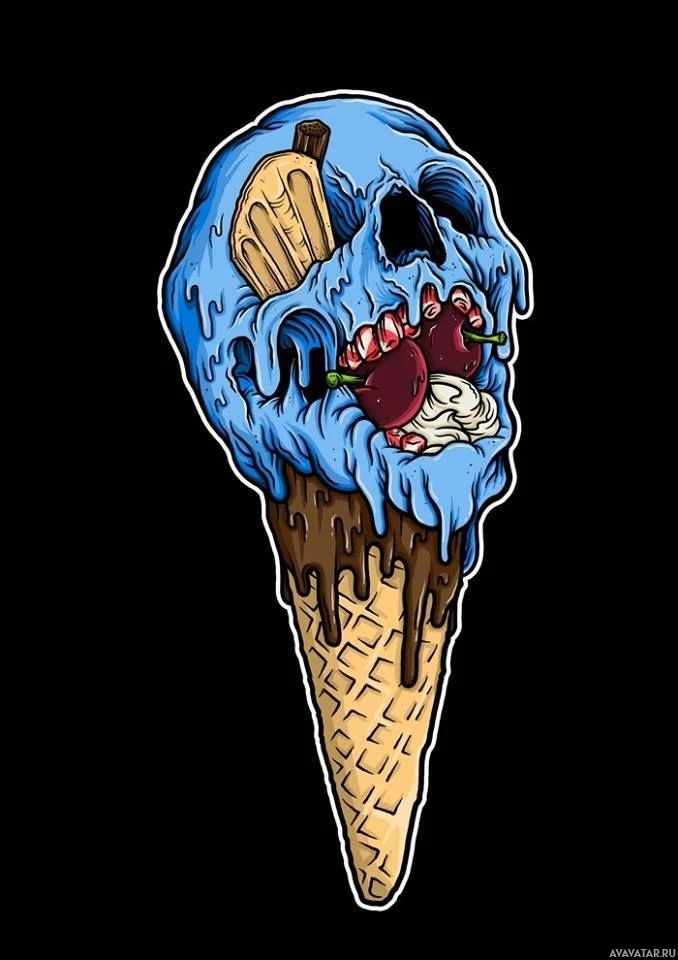 an ice cream cone on top. The ice cream is melting, and the skull appears to be screaming or making