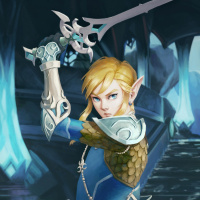 pointed ears and is holding a sword. The attire suggests that the character might be a warrior or a guardian of some sort. The environment looks dark and moody, which could indicate a scene from a dungeon or an underground location in