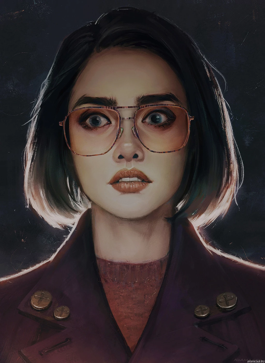 a serious expression on her face. The image seems to have been designed with certain visual elements that suggest it could be related to a specific style or theme, but without additional context, it's not possible to provide more detailed information about the picture.