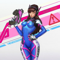 the Overwatch universe created by Blizzard Entertainment. The artwork is detailed and colorful, with elements that reflect her backstory and role within the game's narrative. The logo of "D.VA" is visible on the bottom right corner of the image, indicating her identity as