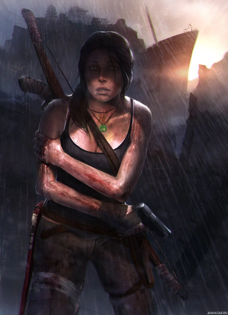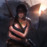 dangerous environments and solves puzzles. The atmosphere is intense, with the rain and ruins creating