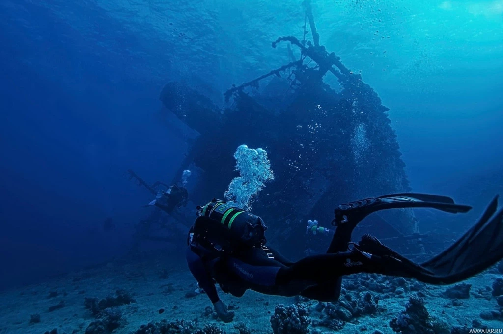 marine life such as coral in the vicinity. This scene captures the exploration of