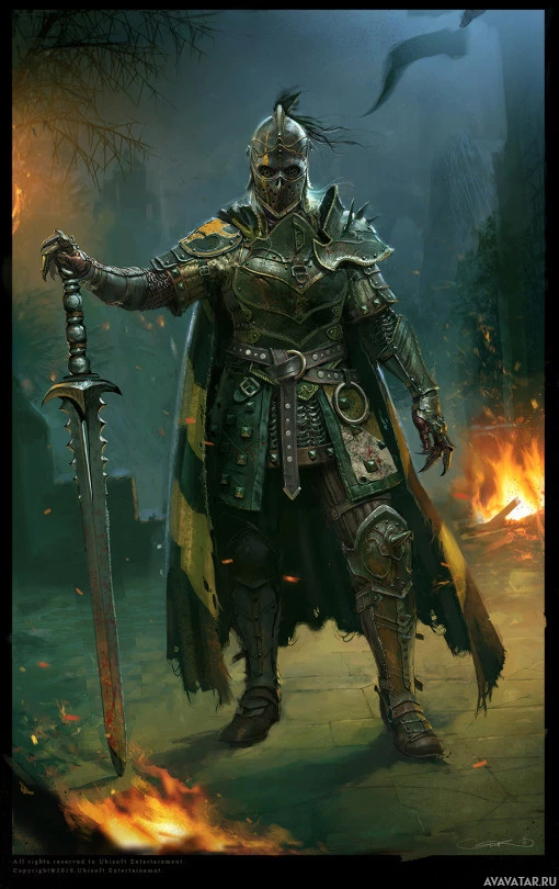 The image shows a character dressed in medieval-style armor, reminiscent of the kind worn by knights or warriors during