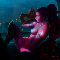the video game "Overwatch," specifically Widowmaker. She is portrayed with