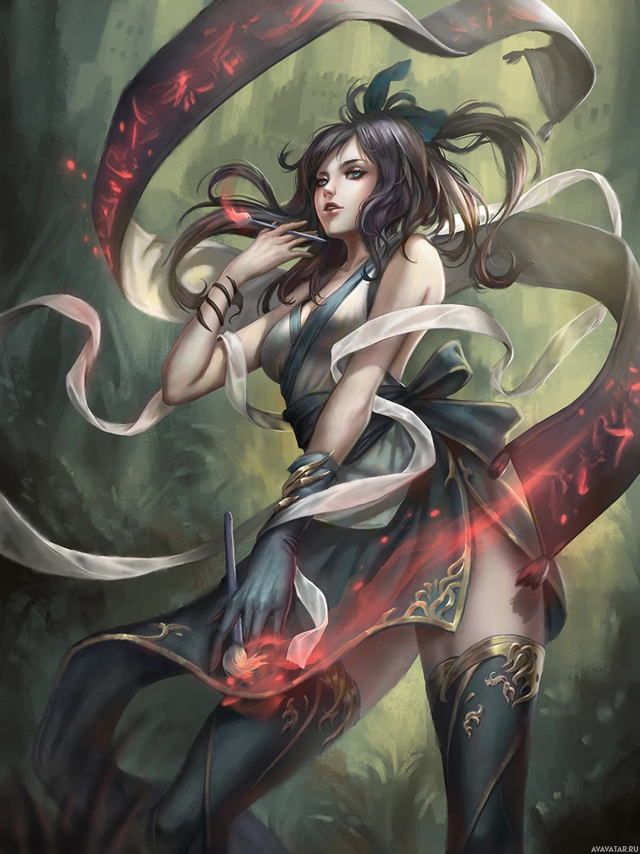 magical energy or aura emanating from her hand. Her attire also suggests she might have some sort of supernatural or