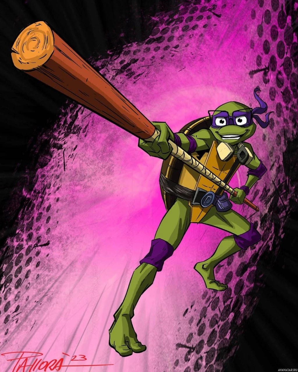 The image features an illustration of Donatello, one of the four Teenage Mutant