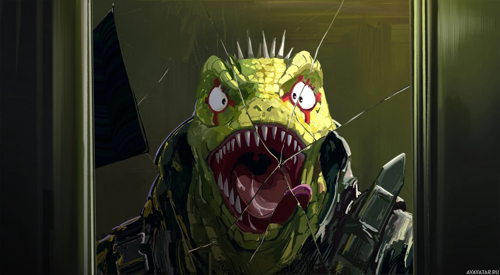 animated character that resembles an Argonian from the game "The Elder Scrolls V: Skyrim." It has the distinctive features of an Argonian, such as