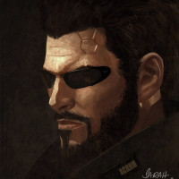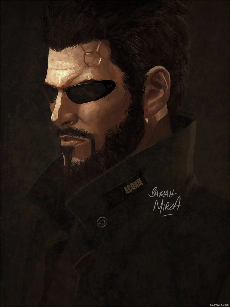 This image depicts a stylized character that appears to be inspired by Deus Ex, a popular