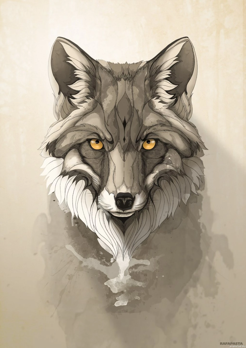 a textured background that resembles paper. The fox is depicted with detailed fur,