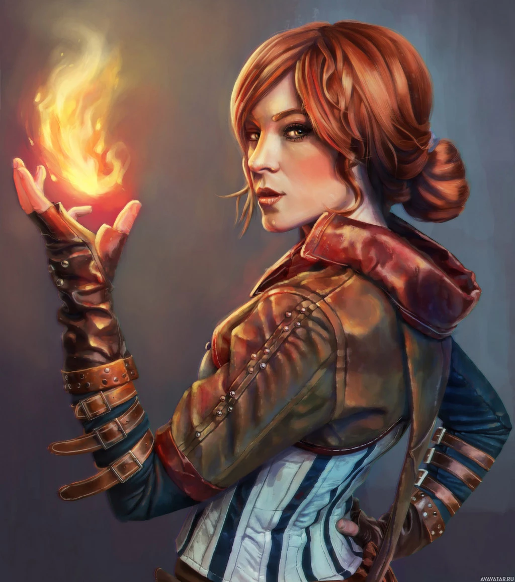 the video game "The Witcher 3: Wild Hunt." She is shown with