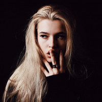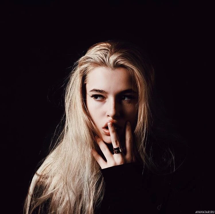 На картинке изображена женщина со светлыми волосами. Она кажется в помещении, и ее выражение лица несколько созерцательное или интенсивное. Ее рот слегка открыт, как будто она в середине разговора или только что закончила говорить.