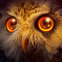 The image features a stylized representation of an owl. It is not a photograph but rather a piece of digital artwork that depicts the owl with