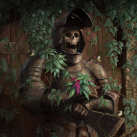medieval armor. The helmet is detailed with what appears to be a skull design, suggesting that this could be a character or figure inspired by