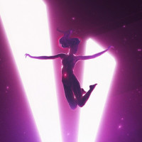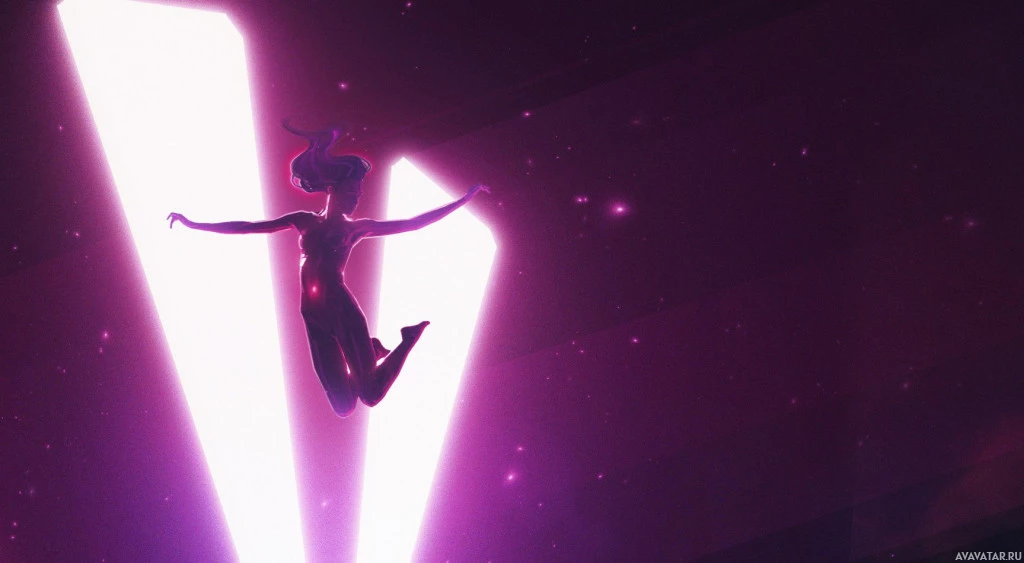 The image shows a silhouette of a girl mid-air, surrounded by a dark and
