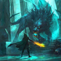 an otherworldly creature that resembles a demonic monster. The creature has a menacing appearance with sharp teeth and