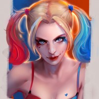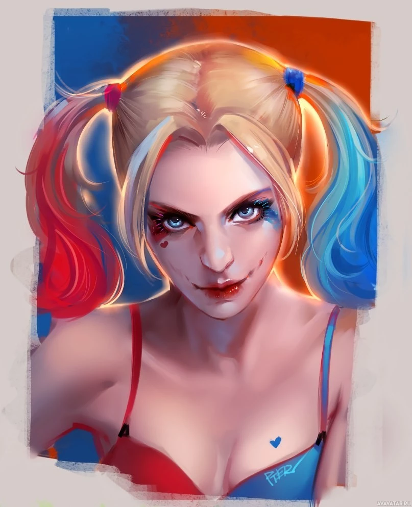 Harley Quinn, a character from the DC Comics universe. She is known for her iconic appearance with