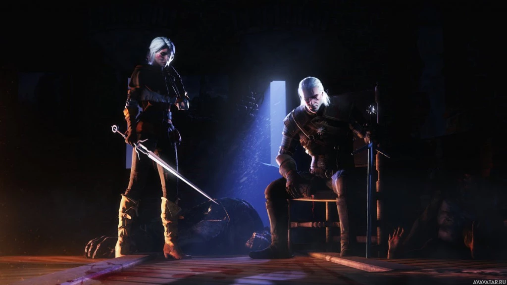character on the left is holding a sword and appears to be Ciri, portrayed by actress Freya Allan. On the right is