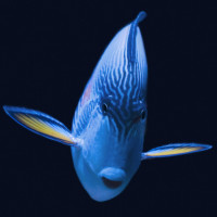 На снимке изображена красочная рыба. По-видимому, это тип рыб-пухов, характеризующийся яркими цветами и отличительной формой тела с большими пузырьковыми чешуйками на спине, которые могут использоваться для плавучести или в качестве формы защиты.