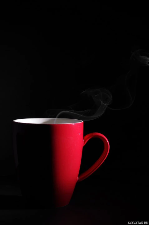 a red mug, which is likely a cup. There are steam or vapor rising from the mug, suggesting it might be hot and ready to drink. The background is black and white, which could indicate that this is an edited image with a selective